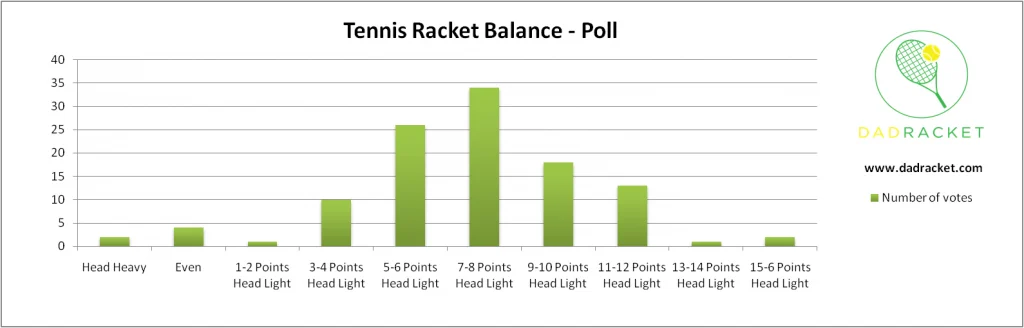Here’s a poll over at Tennis Warehouse showing that 7-8 points head light is the most popular option among the forum members.